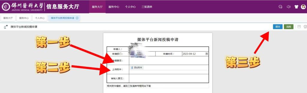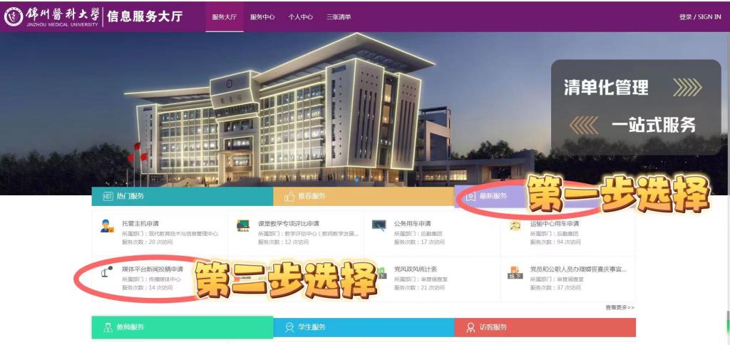 学校信息服务大厅升级启用后,传播媒体中心开通网络投稿平台,为各单位各部门提供网上统一申请、快速办理、及时发布服务,切实规范新闻投稿流程,提高校内新闻的审核发布效率。具体通知如下: